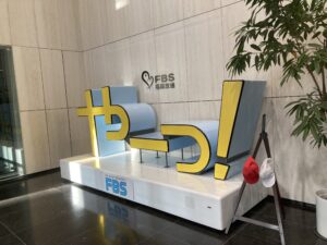 (FBSの入り口にて)